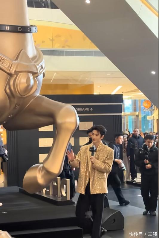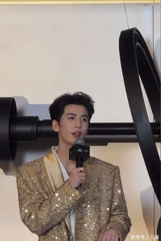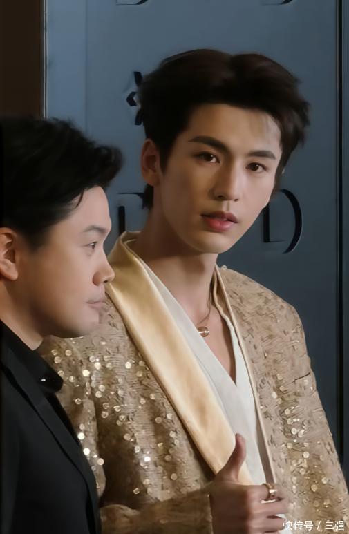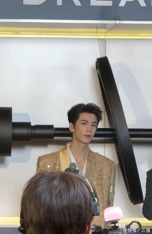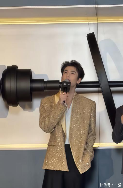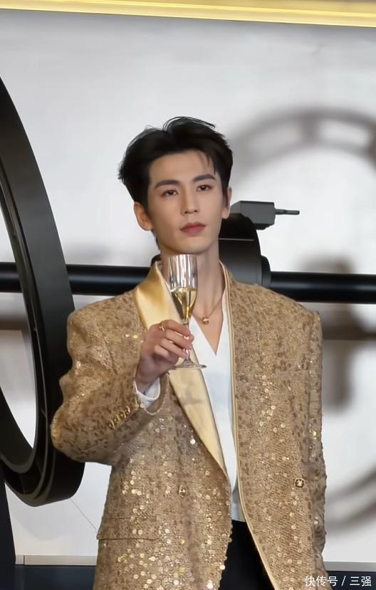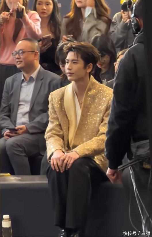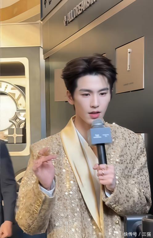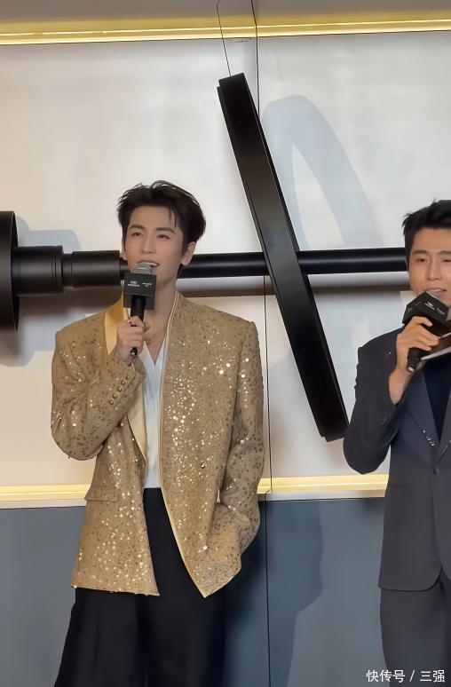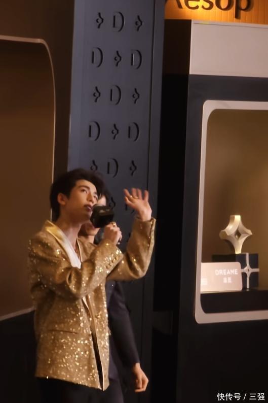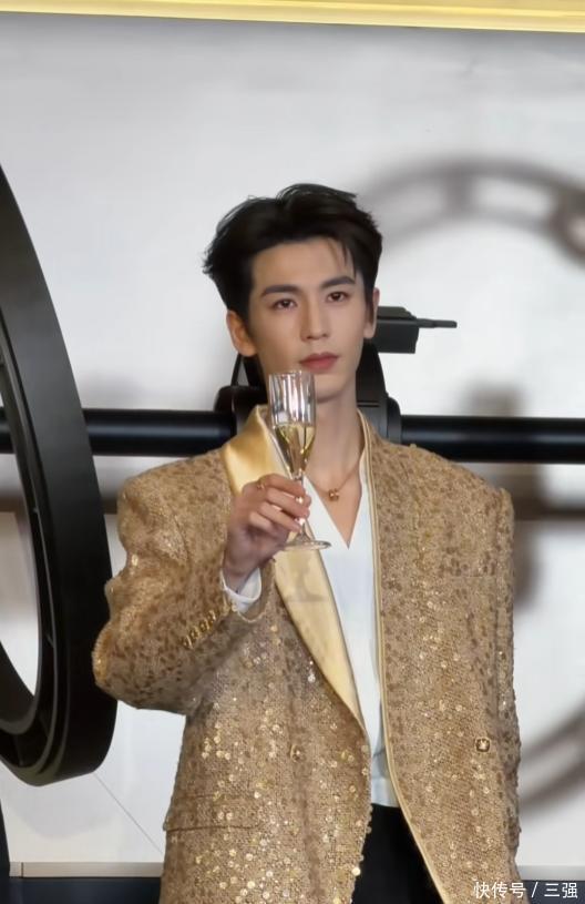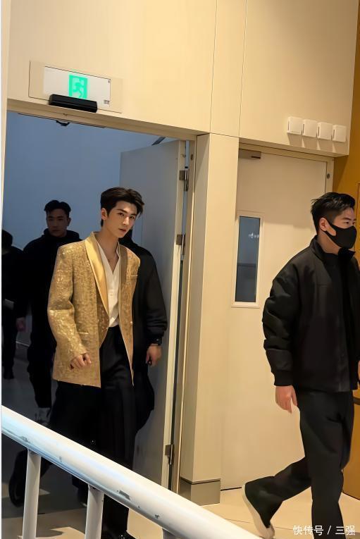 他当天穿了一身金色的西装,款式简约但显得特别有型。最引人注目的是他的身高,官方身的他站在人群里,真的非常挺拔出众。