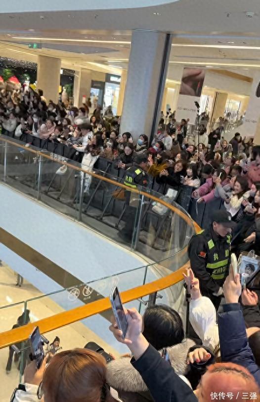 他不仅耐心地给前排的观众签名、互动,还特意走到商场的三楼,向那些站在远处、没法挤到前面的粉丝挥手打招呼。