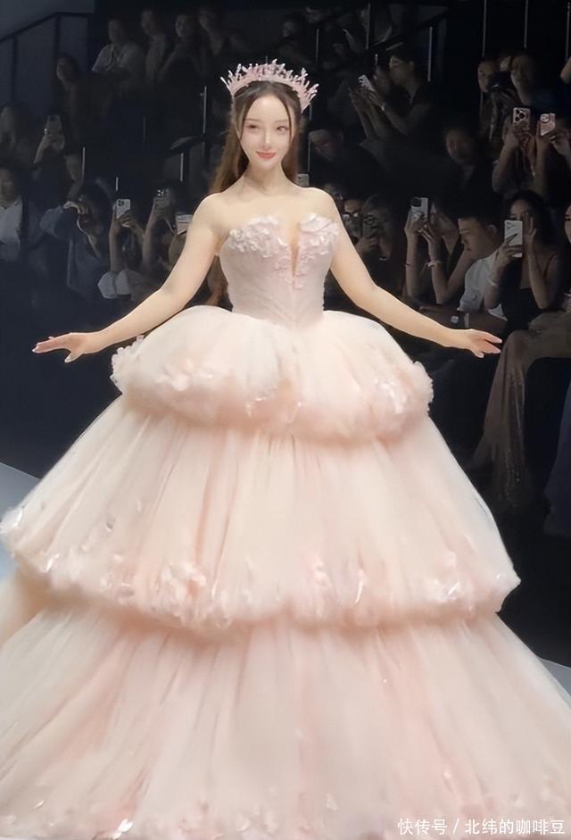 气质还是在那放的,后来她还穿了一身粉色的裙子,头上还弄了一个发冠,也是十分的漂亮,就跟个公主一样,站在台上,很亮眼。 台下的人也是纷纷拍照,跟别的美女在一块,还是能一眼就看出她的不同的。